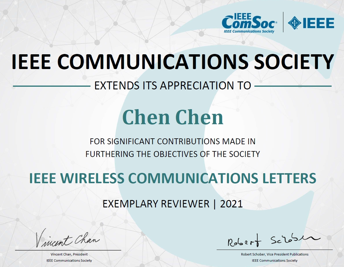 - 2021年《IEEE Wireless Communications Letters》期刊 Exemplary Reviewer [证书]